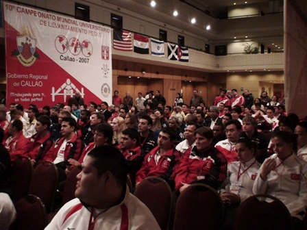 | 8/12 | 競技第4日目 | 廣瀬:接戦を制し銀メダル(ちなみに体重は学生世界一!) 4年生に囲まれて大きな身体を小さくしていた廣瀬. 成功率が伸びなかった先輩達の分を挽回する6本成功. スナッチ3位に付けて,得意のジャークでJUDGE(USA)を逆転. 見応えのある試合をしてくれた. |