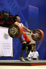 スナッチは1本で終わったが,ジャークで面目躍如の185kgは日本新記録.